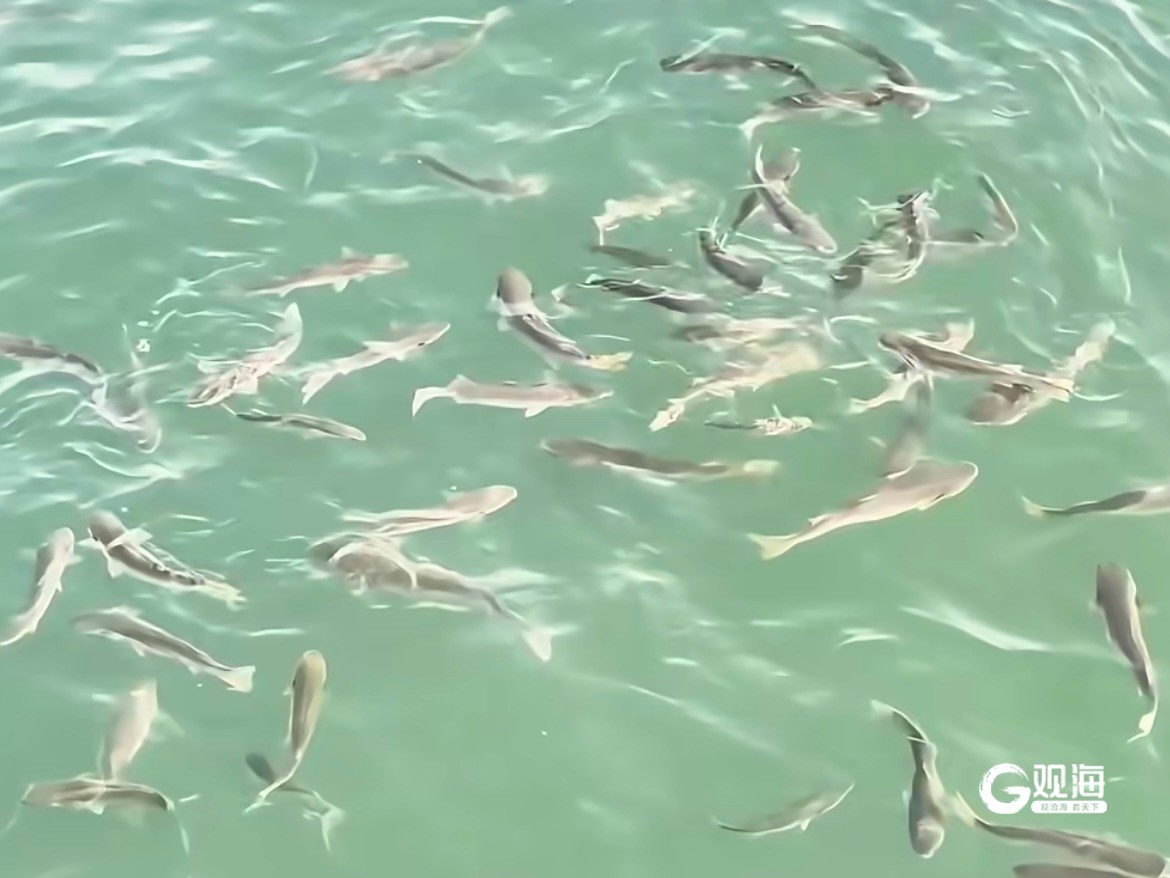 On a beautiful autumn day, the bustling Zhanqiao Pier presents a classic Qingdao panorama. Near the iconic Huilan Pavilion, however, visitors' gazes have shifted from the horizon to the water below. Dozens of large, dark-grey fish glide in unison before scattering in a flash of shimmering ripples—a captivating display of wild nature in the heart of the city.