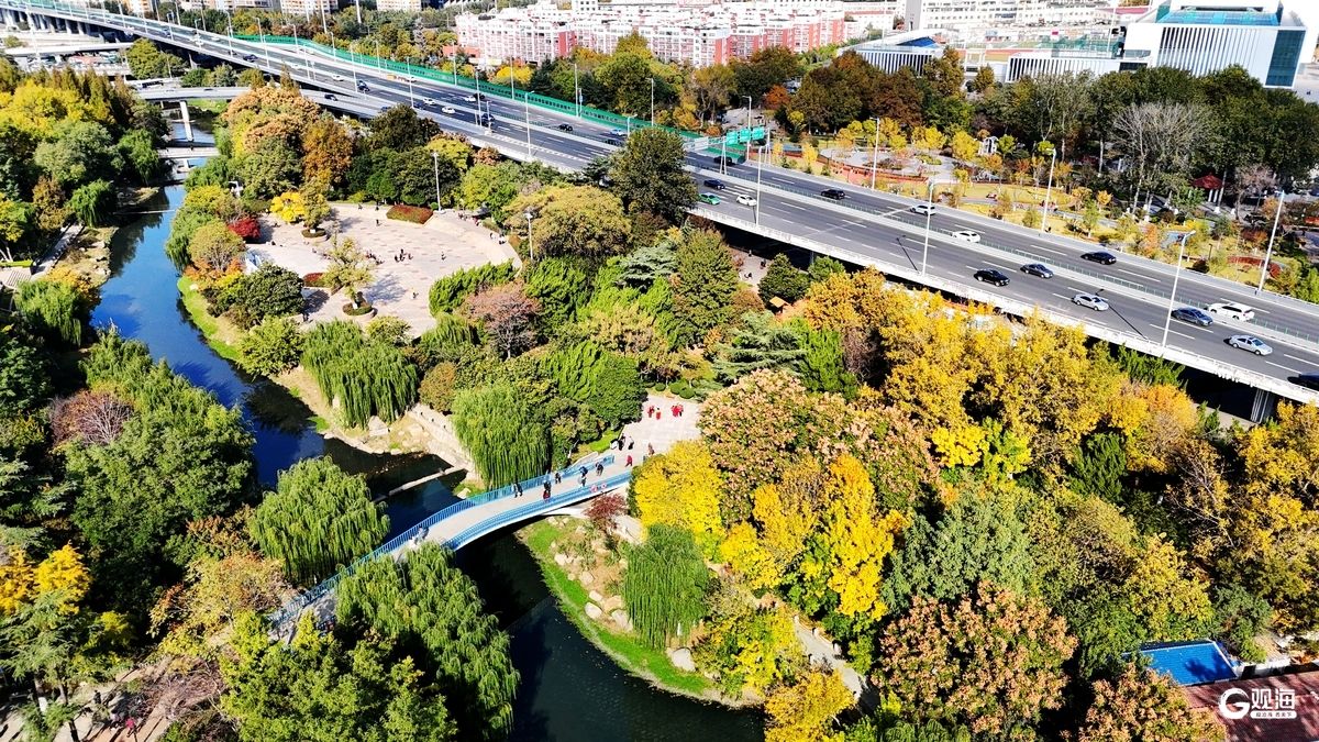 QINGDAO DAILY/Guanhai News, November 6 - As autumn hues permeate Qingdao's streets, Haipo River transforms into a captivating scroll within the park city. Riverside trees shed their lush greenery, displaying layered shades of orange-red, golden-yellow, and deep green. These vibrant colors reflect upon the river's surface, where rustling leaves and murmuring waters under gentle breezes sketch poetic symbiosis between nature and urban life.