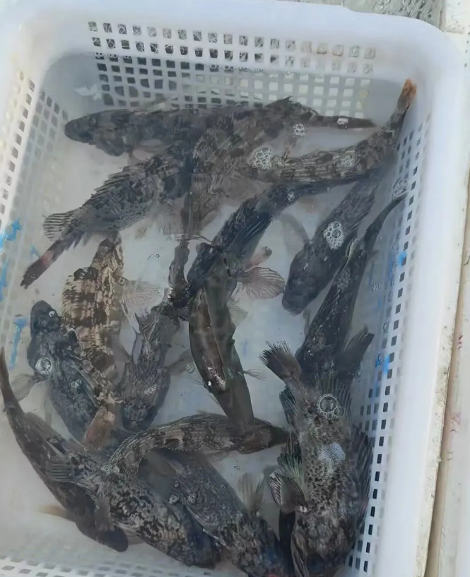 "This is a yellow croaker, caught with our own ground cage traps, a local one," a fisherman at Nanjiang Wharf introduced a large fish weighing about 3 jin (1.5 kg) to a customer. On the afternoon of the 24th, at the fish market of Nanjiang Wharf, most stalls were selling live fish, mainly black rockfish, gurnard, skate, and conger eel. These fish were generally small, though some larger conger eels were available, priced at 50 yuan per jin (0.5 kg). According to reports, live fish only started appearing in the last couple of days. The cold weather and cool seawater have driven small fish into the ground cage traps, allowing fishermen to haul them up alive and intact.