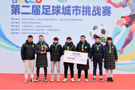 The event, which spanned four weeks and featured 16 teams with over 300 participants, was filled with countless spectacular moments. On December 27, the 2nd Qingdao Football City Challenge 2025 officially concluded at the football field of Qingdao Digital Economy Industrial Park. Runze Bandao ultimately lifted the championship trophy, with Kelme-Yingtu and Xuandong 2038 securing the runner-up and third-place positions, respectively. Together, the players, referees, and fans ignited the city's passion for sports this winter with their enthusiasm and professionalism.