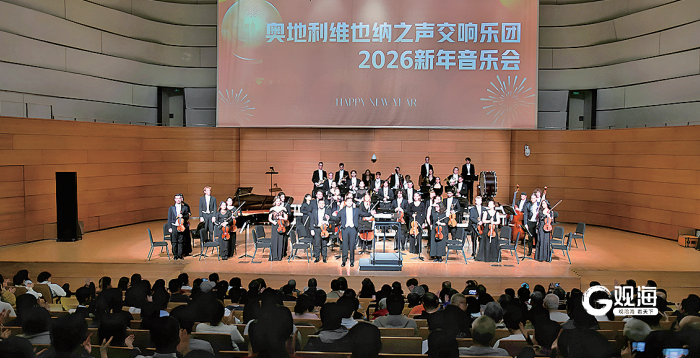 On the evening of December 31, 2025, Austria's Vienna Voice Symphony Orchestra presents a splendid New Year's concert to the citizens at the Qingdao Grand Theatre Concert Hall.