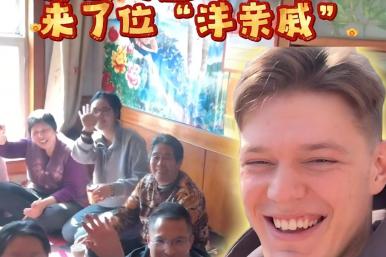 Russian Student Arrived in Qingdao Village to enjoy Chinese New Year 's Busstle